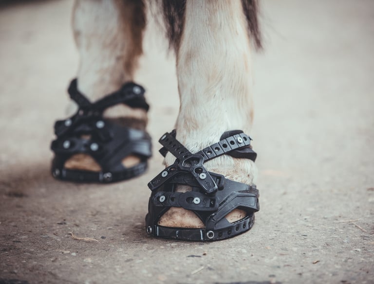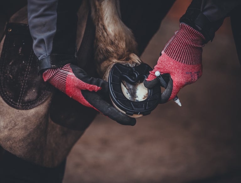 Individuelle Anpassung von Hufschuhen für eine perfekte Passform – der ideale temporäre Schutz für die Hufe.